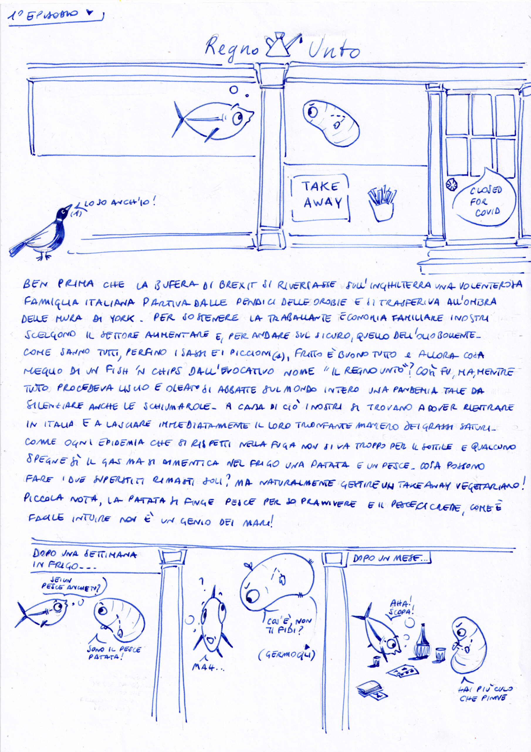 Cosa possono fare un pesce e una patata dimenticati nel frigorifero di una friggitoria chiusa in un’Inghilterra devastata da una terribile pandemia? Possono uscire dall’elettrodomestico fluttuando nell’aria, gestire un take away e chiamarlo “Regno Unto”!